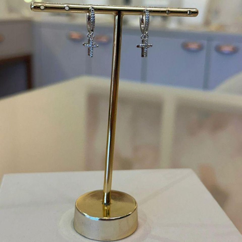 BRINCO PRATA PIZZA CRAVEJADO...