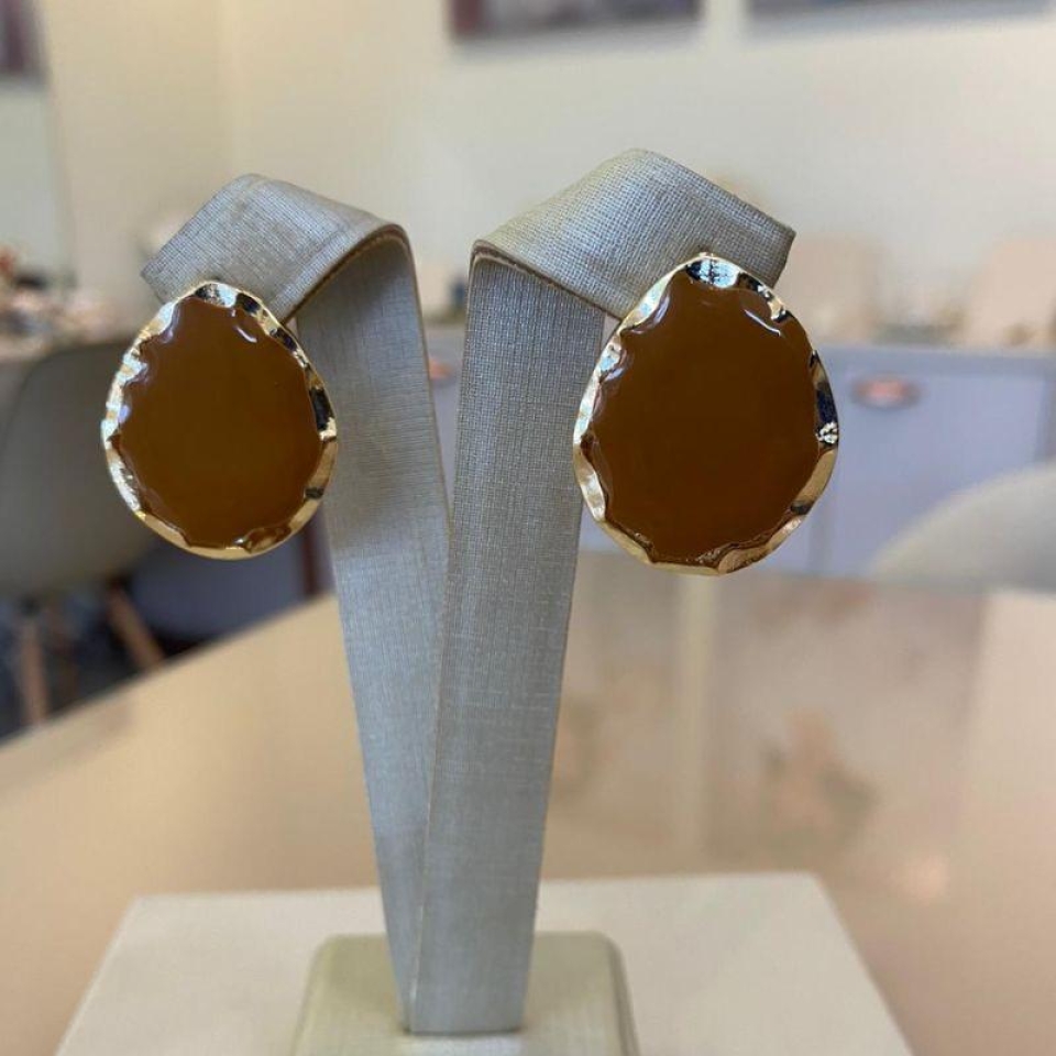BRINCO QUADRADO RESINADO CARAMELO...