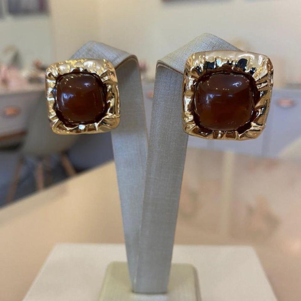 BRINCO QUADRADO RESINADO CARAMELO...