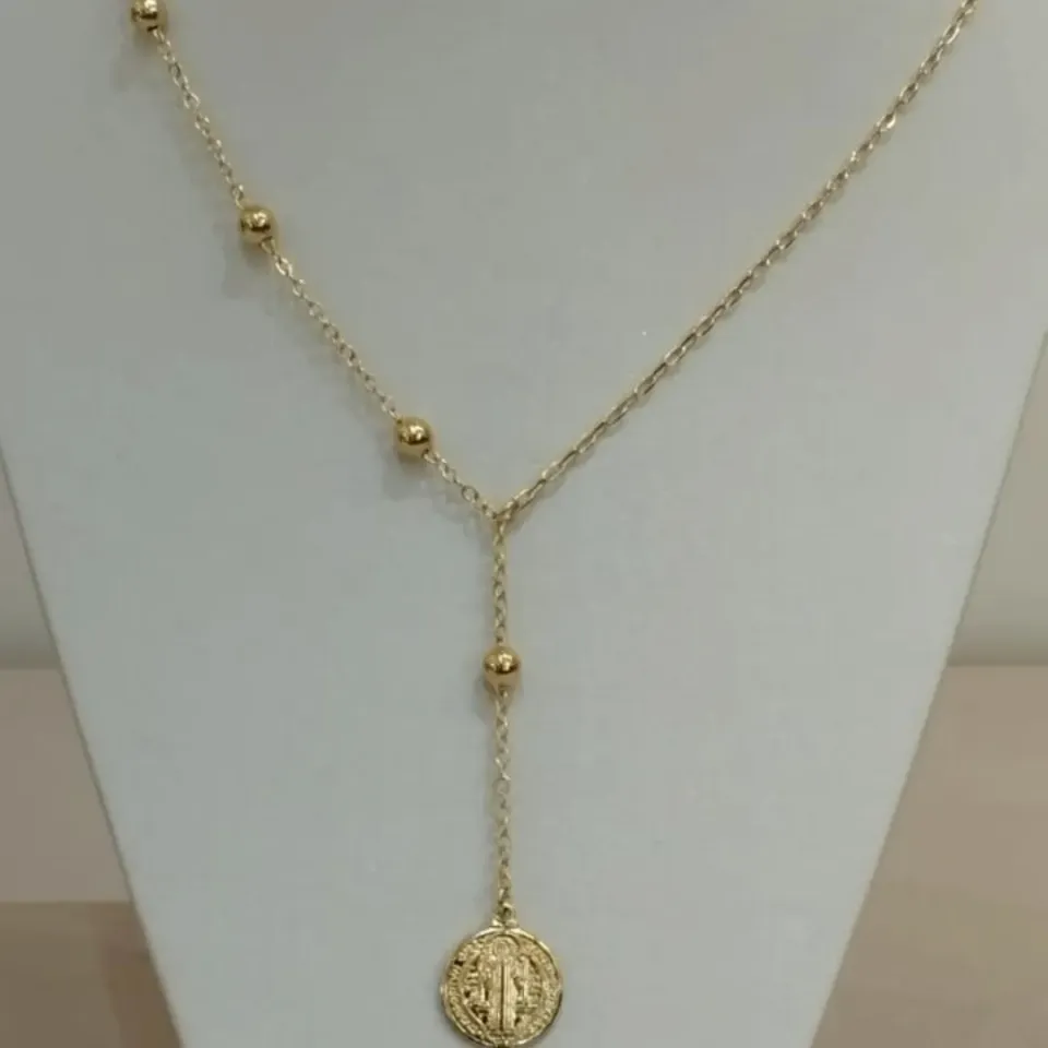COLAR PÉROLA E ESFERAS/BOLINHAS DOURADAS F...