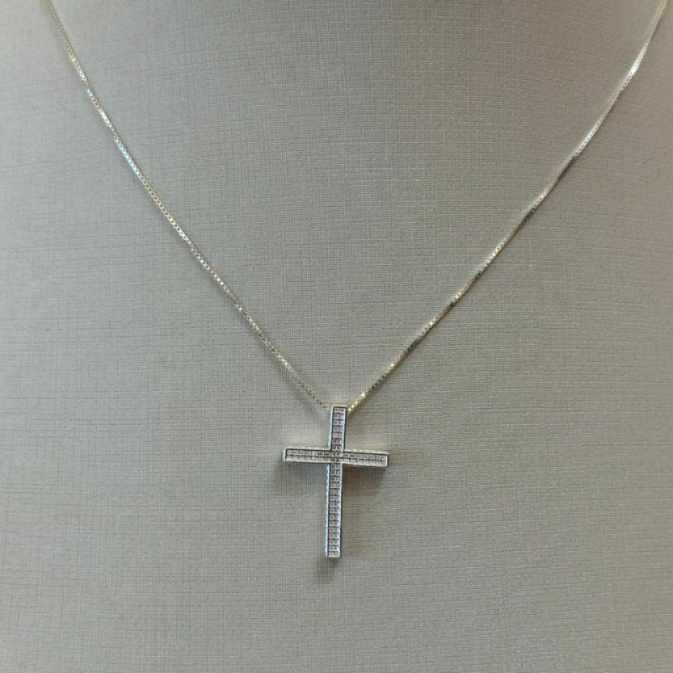 PINGENTE PRATA CRUZ CRAVEJADA...