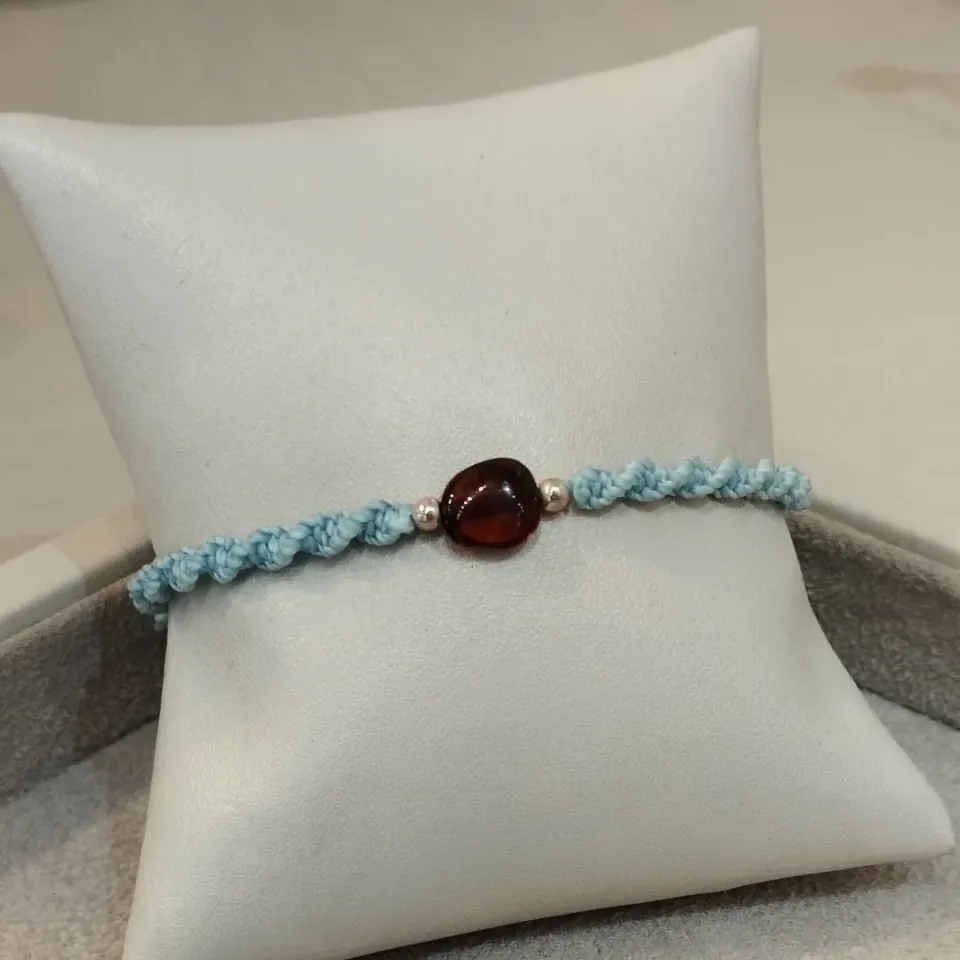 PULSEIRA MACRAMÊ C/ ÂMBAR MOSTARDA...