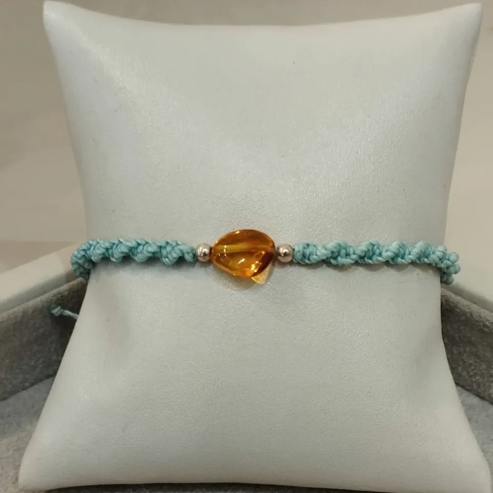 PULSEIRA MACRAMÊ C/ ÂMBAR MOSTARDA...